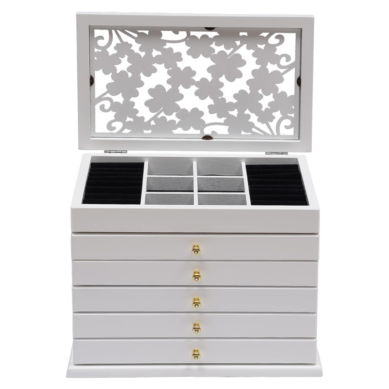 Large Jewelry Box, 6-Tier Jewelry Organizer, Store Different Sizes of Jewelry Separately, Full Pull-out Drawer Multi-Functional Jewelry Storage Box for Necklace Bracelets Watches