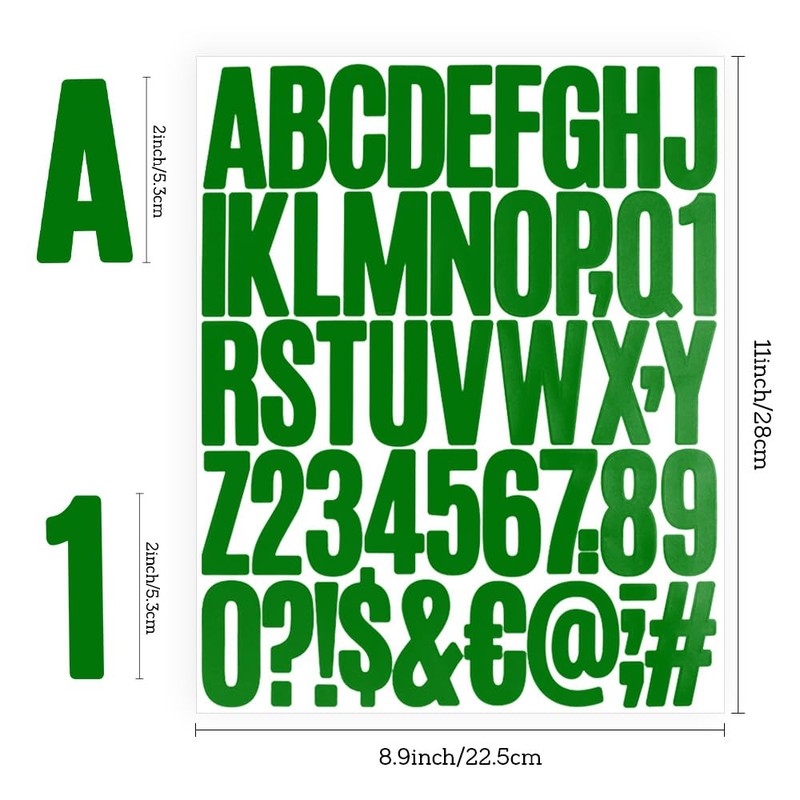 - Package Contents: The vinyl letter stickers includes 20 sheets ,1,000 pieces of stick on letters comprising 26 self adhesive letters, 10 numbers, and 14 punctuation marks. Each alphabet stickers measures approximately 11x8.9 inches (28x22.5 cm), with each individual character being about 2 inches tall—ample quantity provided to meet all your DIY decorating needs effortlessly