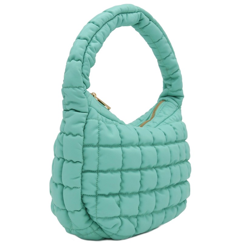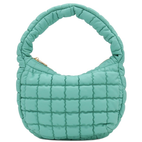 Large Light-weight Quilted Soft Lambskin PU Leather Puffer Shoulder Hobo Bag (L-Mint)