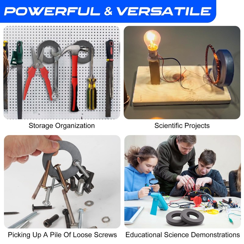 - Perfect Size for Versatility - Each large magnets heavy duty measures OD: 60mm (2.36") x ID: 32mm (1.25") x Thickness: 10mm (0.39"), providing the ideal size for a wide range of applications, including scientific experiments, educational projects, industrial machinery, office organization, and home DIY projects