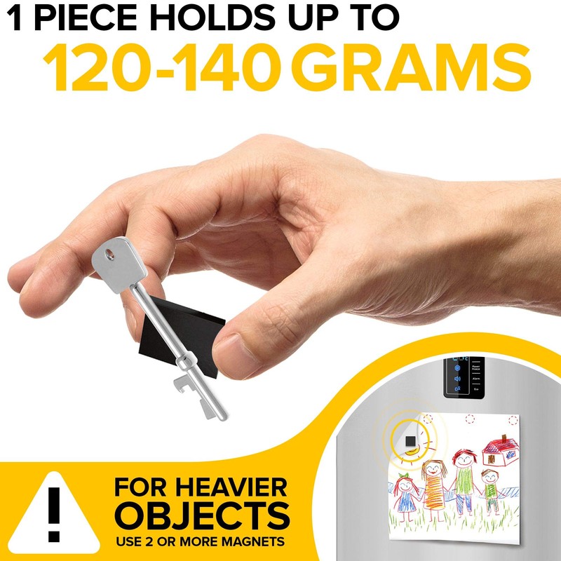 - STRONG, DURABLE & FLEXIBLE Magnetic Sheet with 775 Gauss - Ideal holding power. Each disc can hold up to 120-140 grams. If you want stronger magnetic force, we recommend to use 2 or more magnetic dots. STRONG TESA ADHESIVE BACKING - Stronger than most brands out there!
