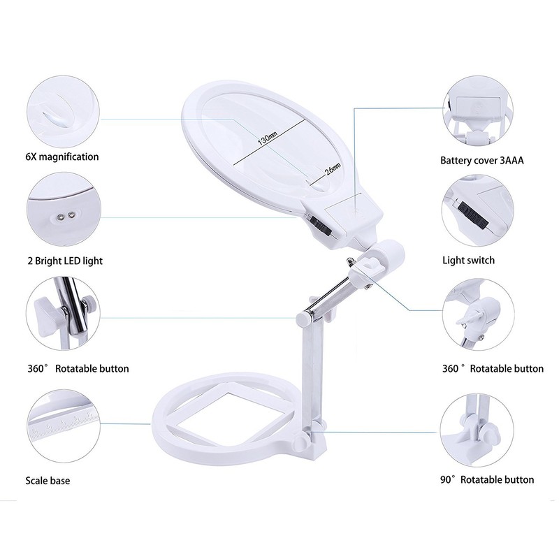 - ★MULTI-PURPOSE: Reading Books, Embroidery, Watch mobile video, Ipad read, Crafts magnifier, Inspection, Magazines, Newspapers, Model Building, Soldering, Jewelry Design, Needlepoint, Sewing , Antiques, Miniature engraving etc