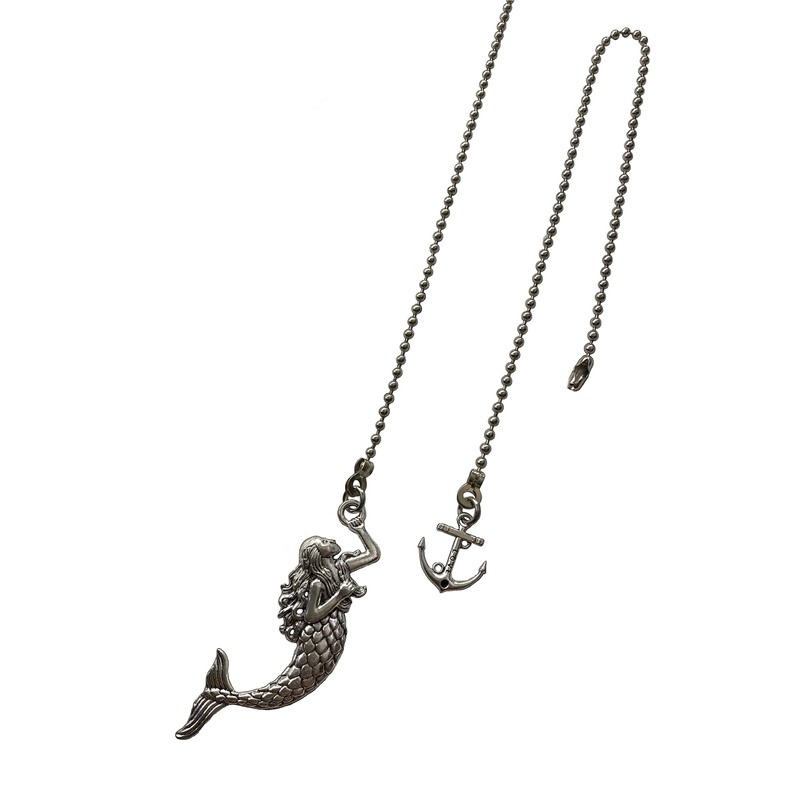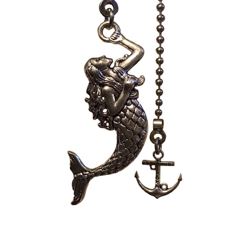 Large Mermaid & Smaller Anchor Silver Fan Light Pull Chain Extender Ornamanet