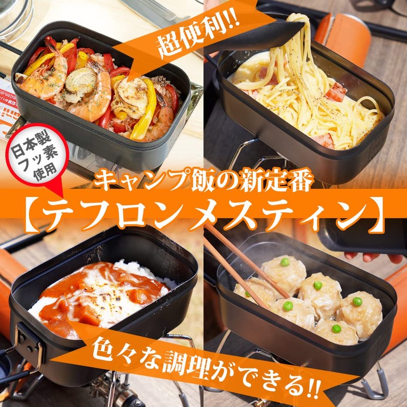 - The large size Teflon Mestin is 3 cook and is perfect for family camping. No burn! Non-stick, so you can easily cook dumplings with a small amount of oil. Can also be used as a field tool. It can also be used for steaming (murashi)