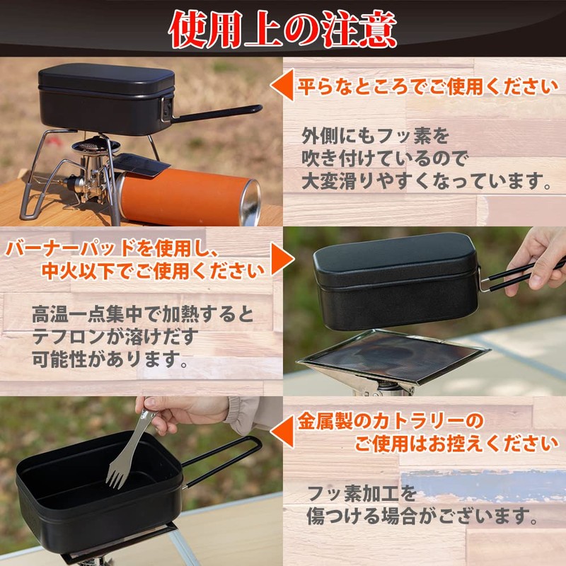 - Precautions for Use: Do not use metal cutlery as Teflon is very delicate and easy to peel. Cooking with direct heat is also a ng of nag. Since the flame is heated at a high temperature (such as gas burner) and fluorine melt, please use a burner pad (even when using a pocket stove) to cook medium heat