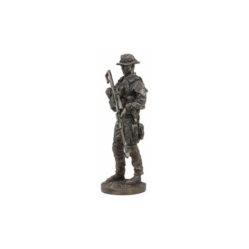 • This Highly Detailed Marine Sniper Statue makes a meaningful gift for military personnels or as a collectible for your finer taste. It focuses on the Sniper holding his long range rifle while standing guard.