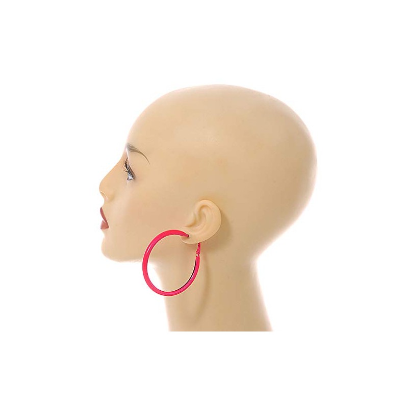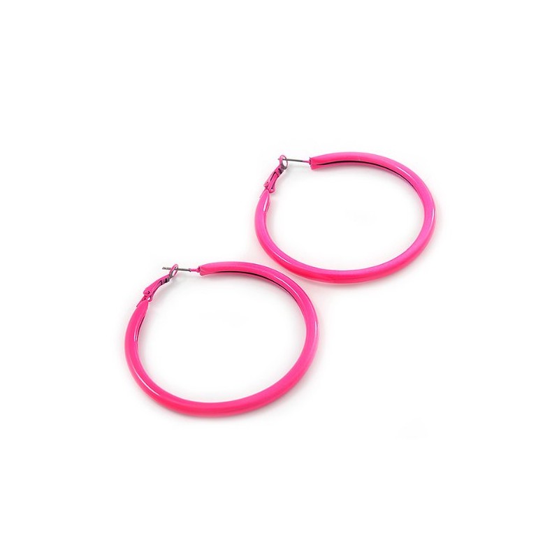 Large Neon Pink Enamel Hoop Earrings In Silver Tone - 60mm Diameter