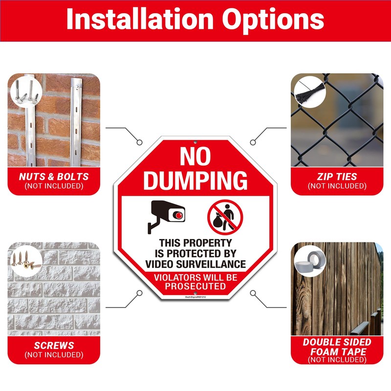 Large No Dumping Sign, Property Protected by Video Surveillance Sign, 2Pack- 12"x12" Rust Free Reflective Aluminum, Fade & Weather Resistant, UV Protected, Easy to Mount
