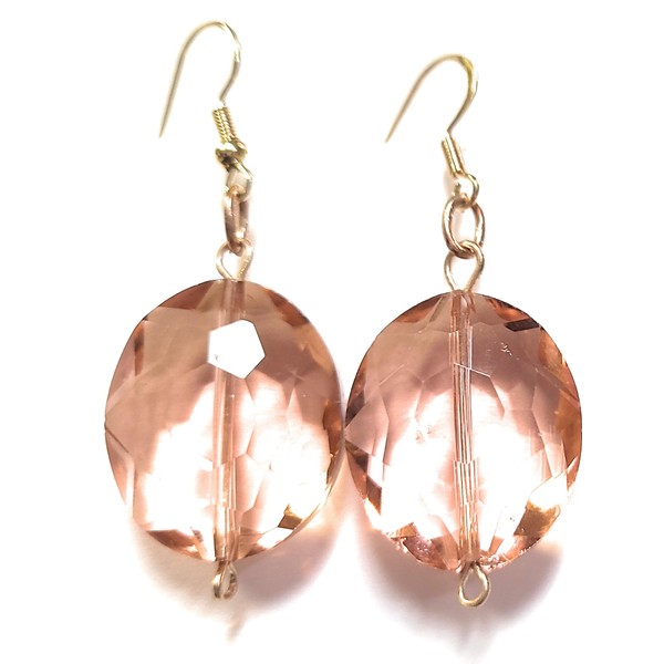 2" long upcycled Peach translucent faceted drop Earrings - item no 170