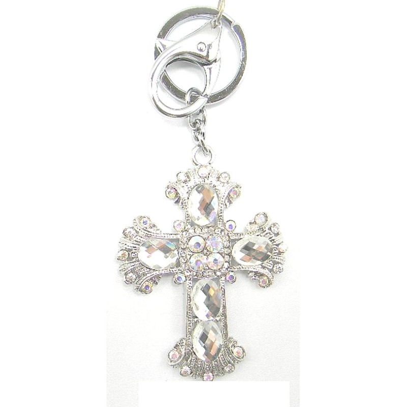 - Gorgeious metal key chain with sparkly crystal cross pendant