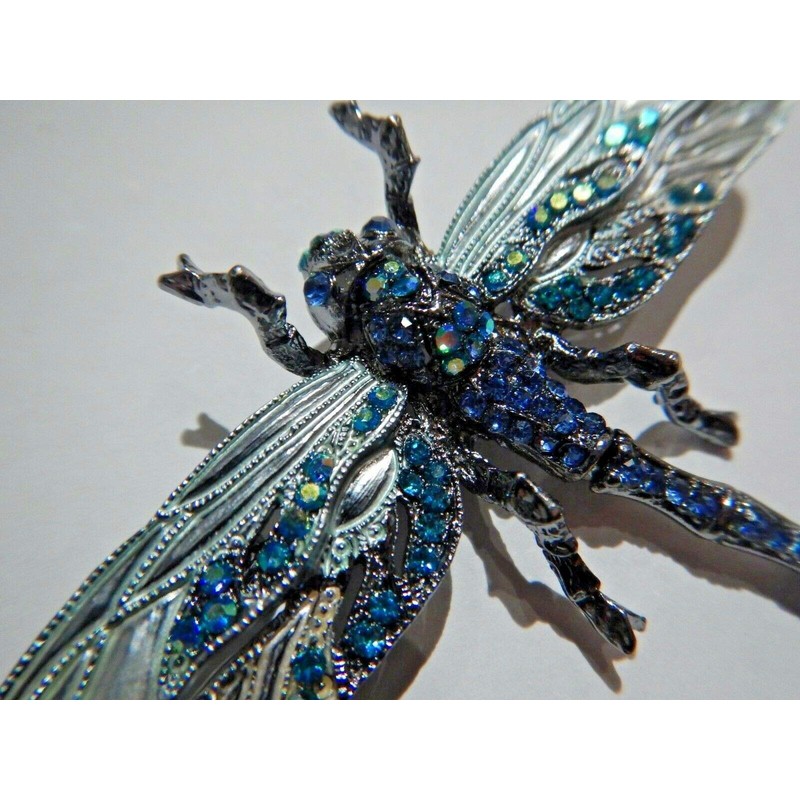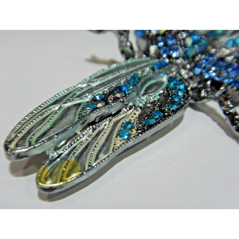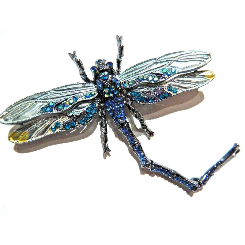 Large Rhinestone Dragonfly Convertible Brooch or Pendant Blue Enamel Insect pin