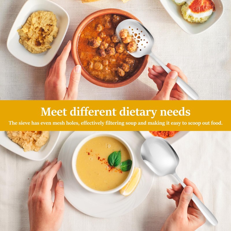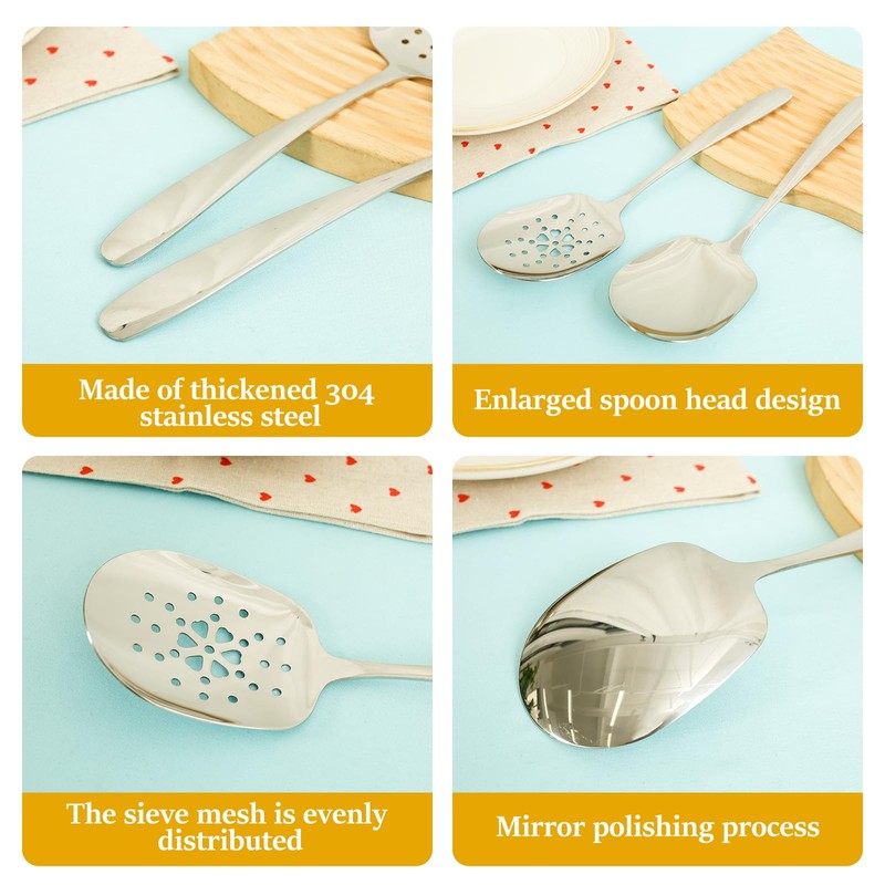• Stainless Steel Spoons: Crafted from thickened 304 stainless steel, this slotted spoon is resistant to deformation and rust, ensuring durability and convenient cleaning