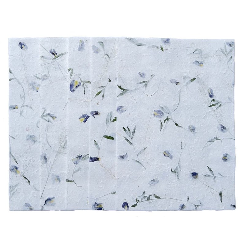 Large Sheets Handmade Thick Natural Flowers Mulberry Paper Sheets 20 x 14 Inches, Painting, Writing Handmade Paper, Decorative Paper, Card Making Paper DIY Craft. (Butterfly Pea Flowers/Grass Leaves)