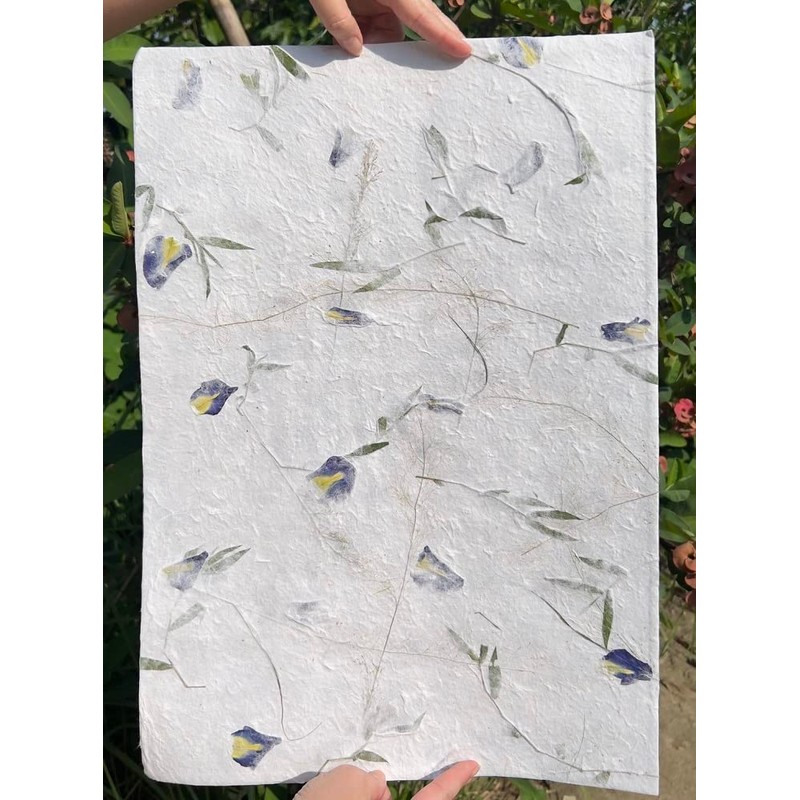 - Material: Natutal Fiber Mulberry Tree, Natural Butterfly Pea Flowers, Natural Glass Leaves.