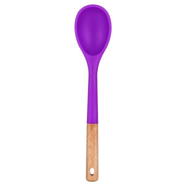 Large Silicone Cooking Spoons, Nonstick Solid Wooden Handle Spoon, Heat Resistan Silicone Kitchen Spoons for Cooking, Serving, Basting, Mixing, 13.2inch (BERRY)