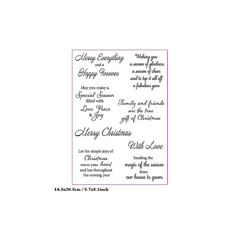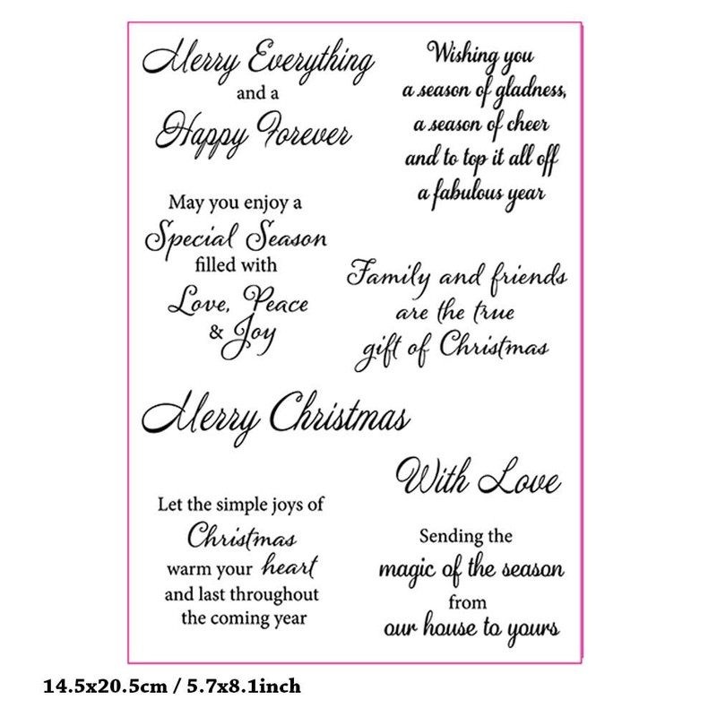 Large Size Sentiments Clear Stamps 8" L x 5.7" W Merry Christmas Sentiments Sayings Phrase Rubber Clear Stamp for Album Photo Decorative Card Making