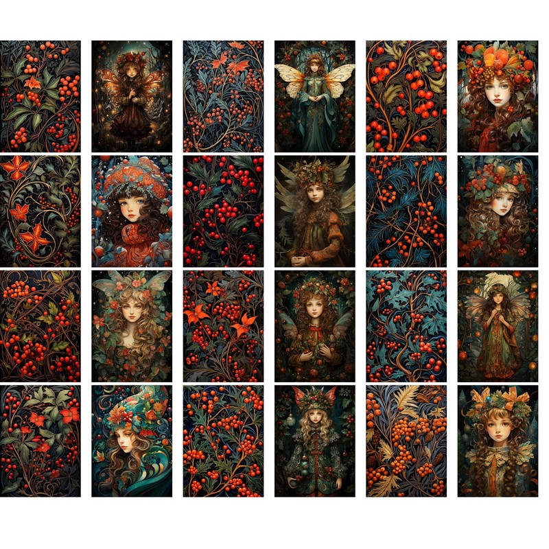 Large Stickers 24 pcs (2.5"x3.5" Each) Colourful Paintings of Festive People Dressed for The Christmas Vintage Postcards Retro Greeting Card Book Illustration Reprint