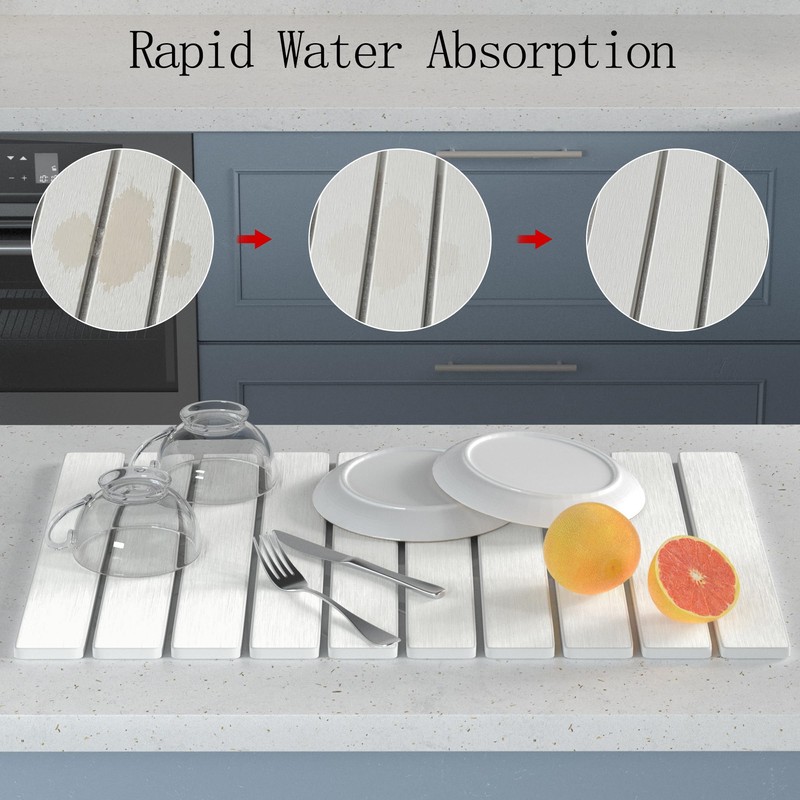 Large Stone Dish Drying Mat for Kitchen Counter, 23.6"(L)×15.4"(W) Foldable Fast Drying Dish Mats, Absorbent Diatomaceous Earth Mats for Dishes & Bottles & Cups
