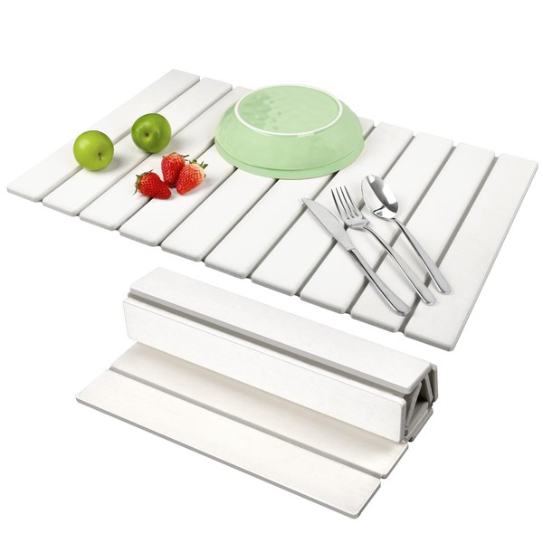 - Foldable and Space-Saving: This large dish drying mat measures 24 inches long, 16 inches wide and 0.39 inches thick, which is larger than standard dish drying mats. Its clever collapsible design making it not only capable of air drying large kitchenware such as pots and pans, but also easy for storage when not in use. Simply fold the dish mat down to one-third its size or roll it up for neat placement in drawers or cabinets.