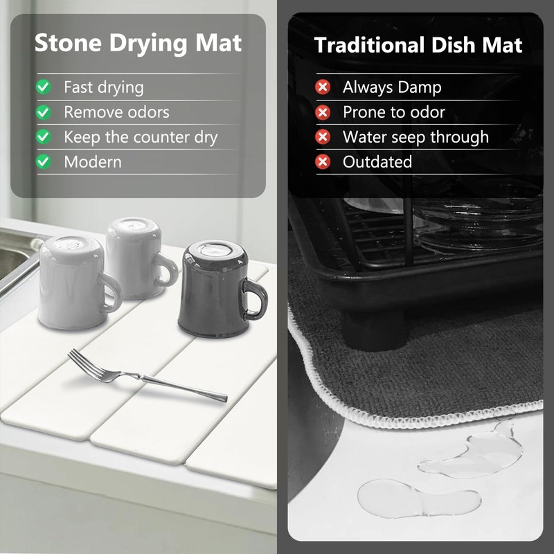 - Extral Large Stone Dish Drying Mats for Kitchen Counter, 28"(L)×16"(W) Quick Dry Dish Drying Mat, Collapsible Eco-Friendly Absorbent Diatomaceous Earth Mat for Dishes Cups, Match Any Countertop