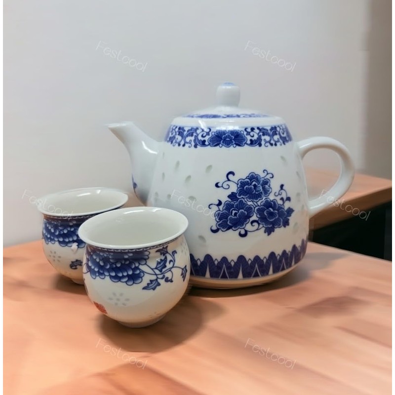 - Made of fine porcelain blue and white