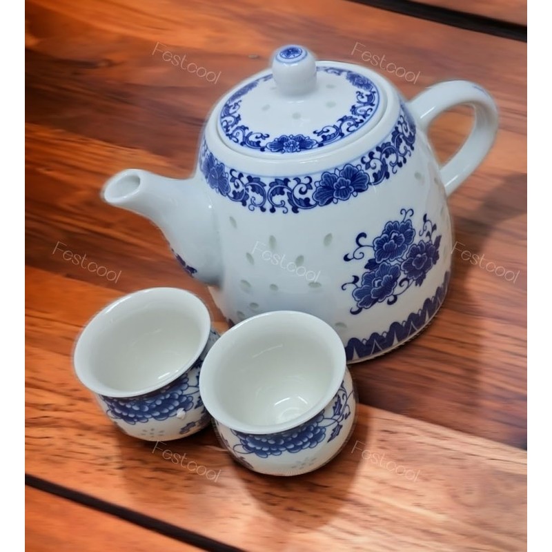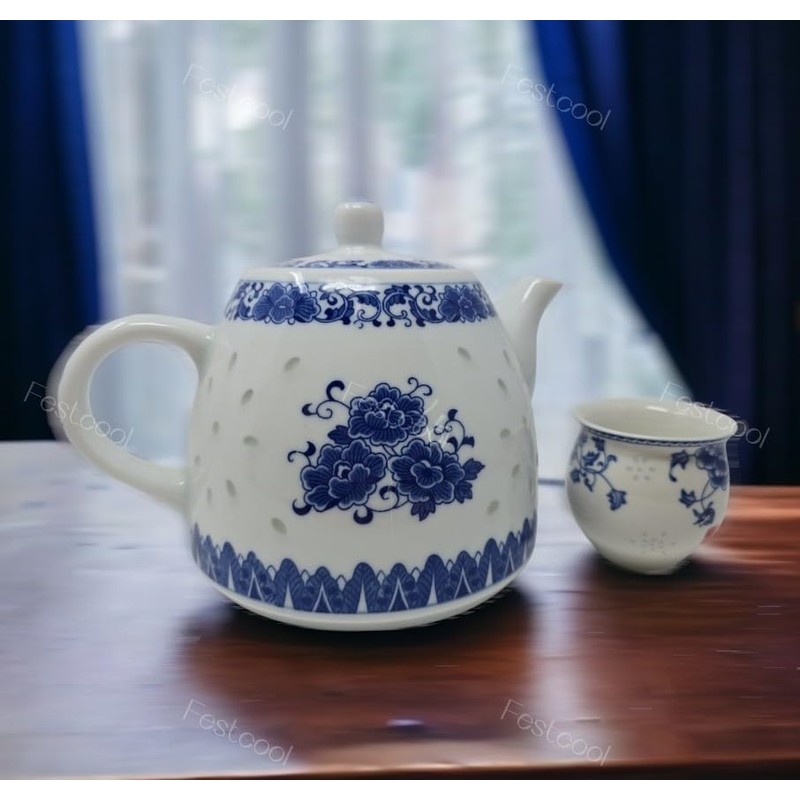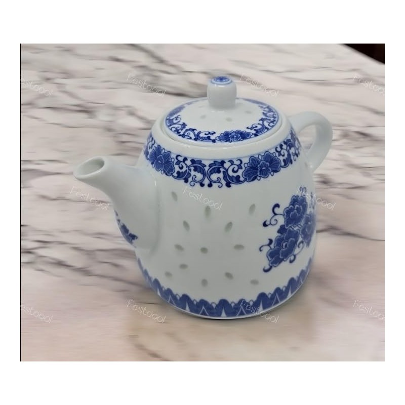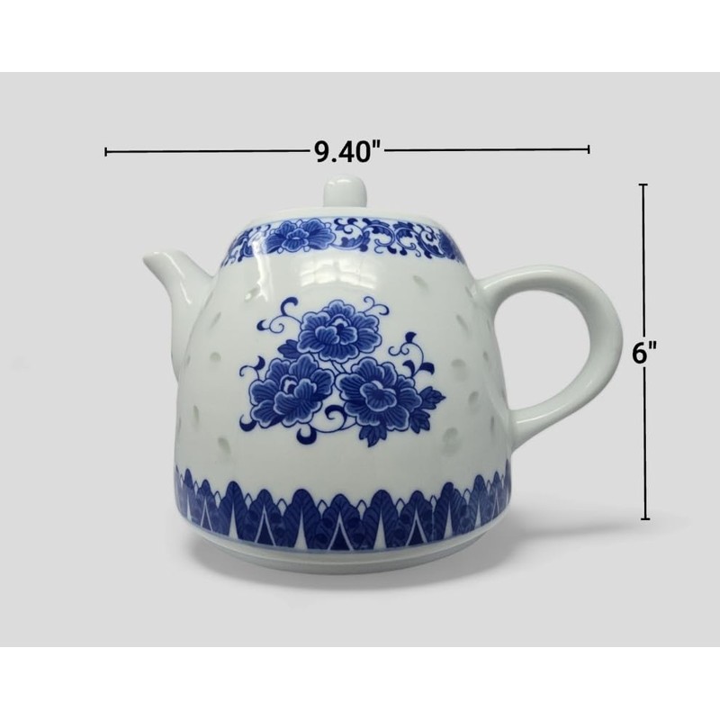 Large Teapot Blue and White Porcelain Tea Pot 6 Cup Store 56 Ounce China, Coffee Pot