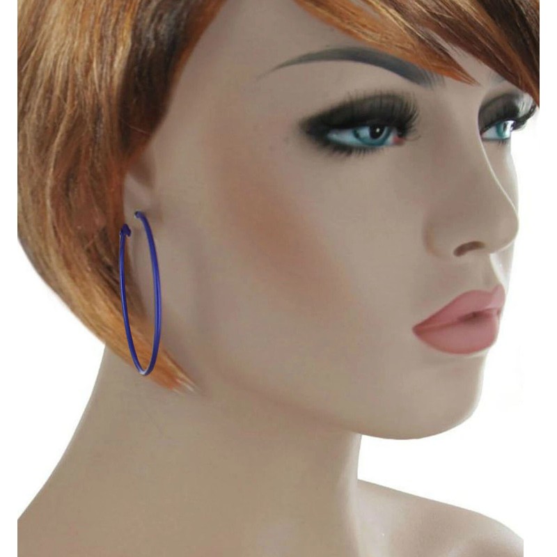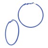 Large Thin Wire Round Hoop Pierced Earrings 2 1/4" - Bright Blue