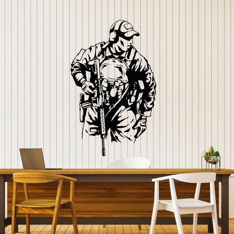 Large Vinyl Wall Decal Special Forces Military Soldier Warrior Decor Stickers Mural (g8208) Black