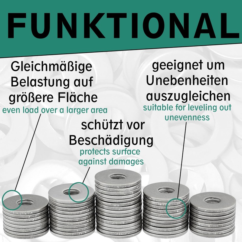 Large Washers DIN 9021 / ISO 7093 Standard, Stainless Steel A2, V2A, Washers Including The Screw Manufacturer Sticker