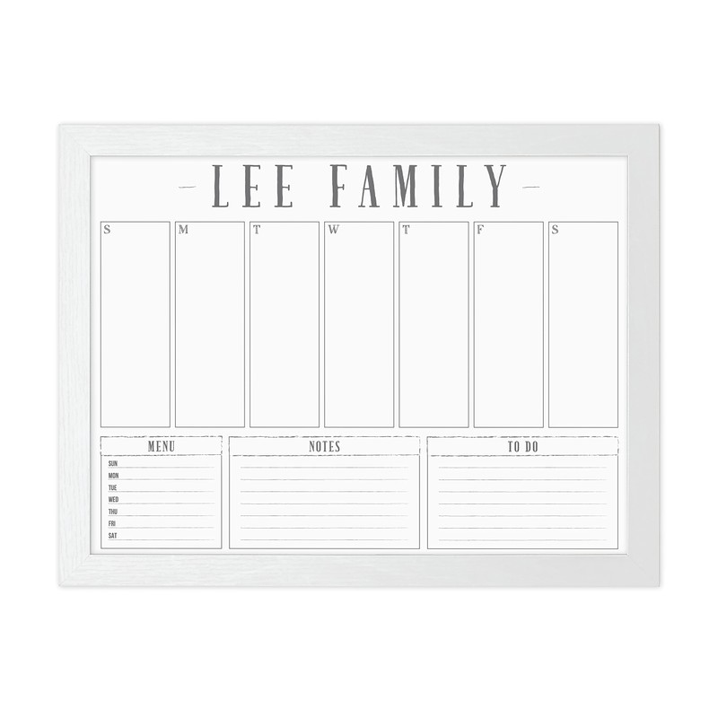 - Framed Personalized Weekly Calendar with To Do and Menu Sections