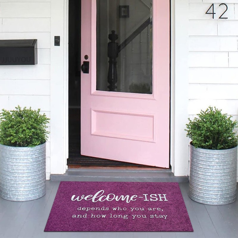 Large Welcome Mats Outdoor Front Door Mat Funny Welcome-ish Doormats Inside Outside Rug Entryway Mats Ideal for Home High Traffic Area, Low-Profile Resist Dirt Entrance Rug for Shoe Scraper, 24"x36"