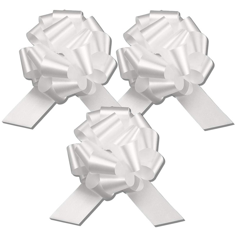 Large White Bow for Wedding - InstaBows 3 Pack Pull Bows for Gift Wrapping & Baskets, 8 Inch Perfect Large Gift Bow for Weddings, Birthdays, Special Occasions, Easy to Assemble