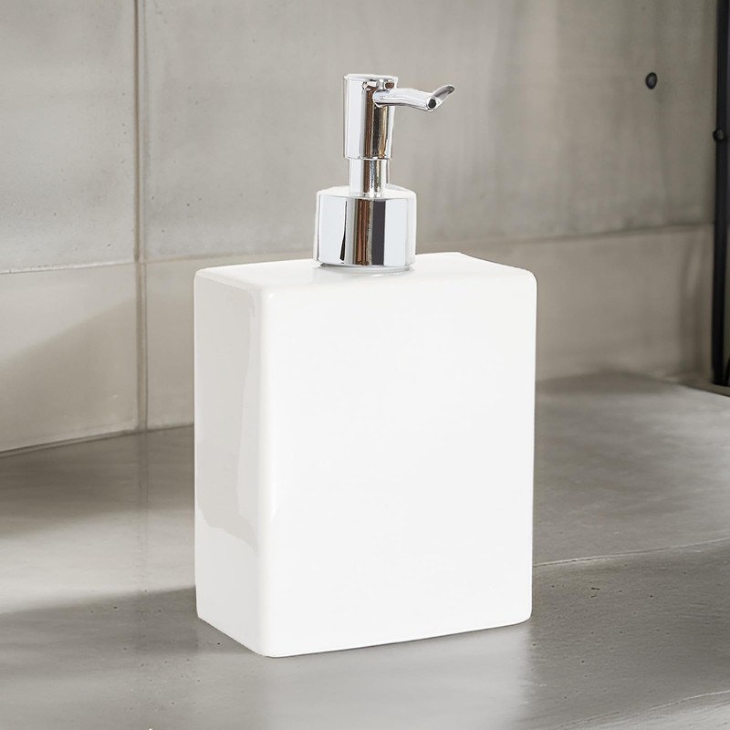 • SPACIOUS WHITE CERAMIC DISPENSER: With space for up to 550ml of liquid soap, this sturdy dispenser has a stainless-steel pump that won’t rust or break easily.