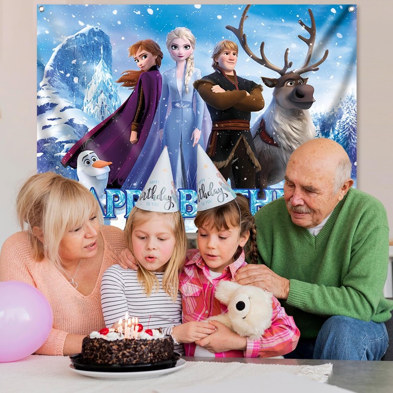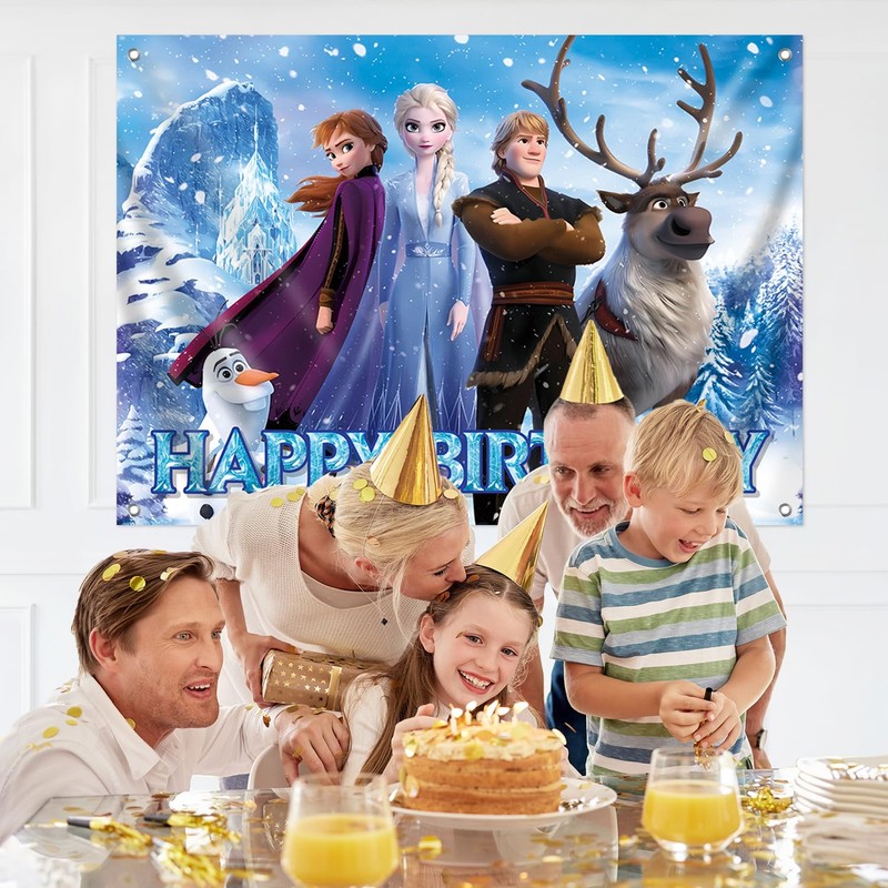 Large Winter Princess Banner, Happy Birthday Banner, Birthday Backdrop for Outside Inside Photo Booth