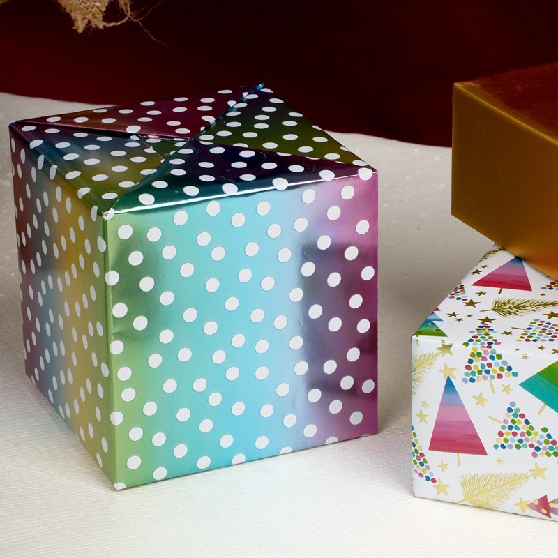 - ๐ฉ๐ฒ๐ฟ๐๐ฎ๐๐ถ๐น๐ฒ ๐๐ฒ๐๐ถ๐ด๐ป: The wrapping paper set comes with 3 designs: Christmas Tree Shapes, White Polka Dot on Colored, Matte Gold, with cutlines on the reverse side.