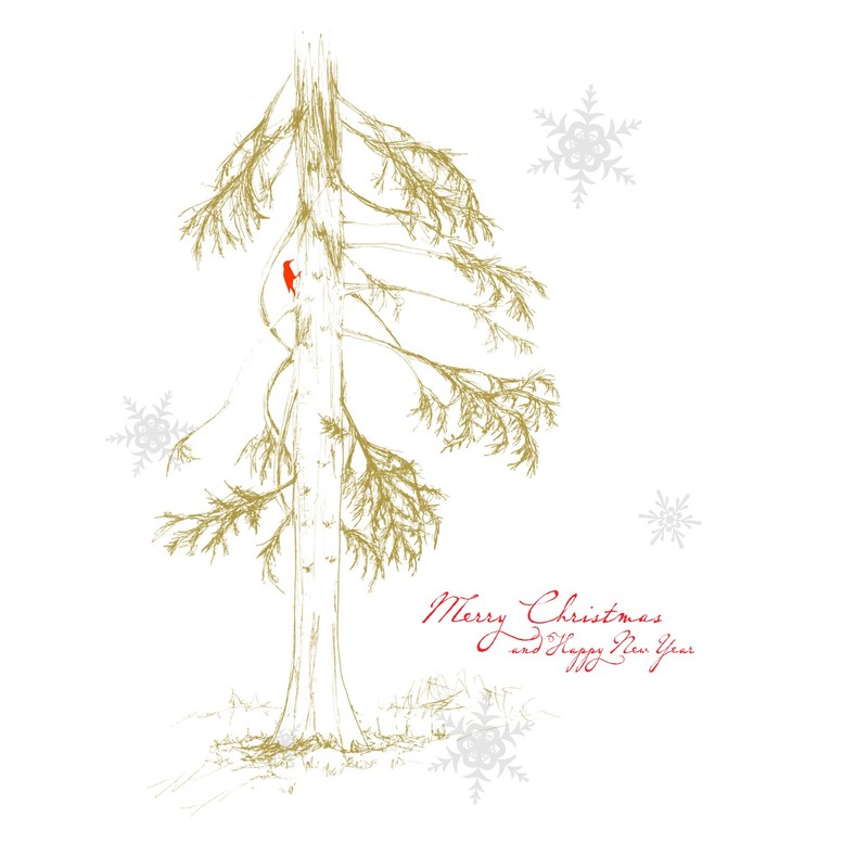 Lark Press Cedar Tree Christmas Card, 4.25" x 5.5" Box Set of 6