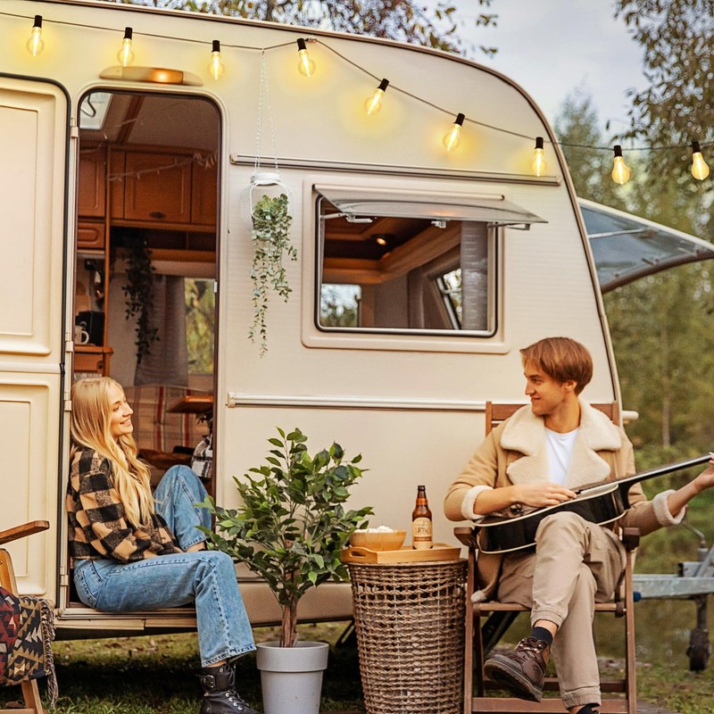 - IP65 Waterproof & Shatterproof Outdoor Patio Lights: Withstands rain, wind, snow, hot weather and accidental drops. Plastic bulbs eliminate glass hazards while maintaining classic vintage charm - leave installed year-round with confidence. No more glass shards on your deck and no need to remove the string lights on rainy days. The waterproof and shatterproof design ensures durability in any weather condition. Note: Please tighten each bulb before use