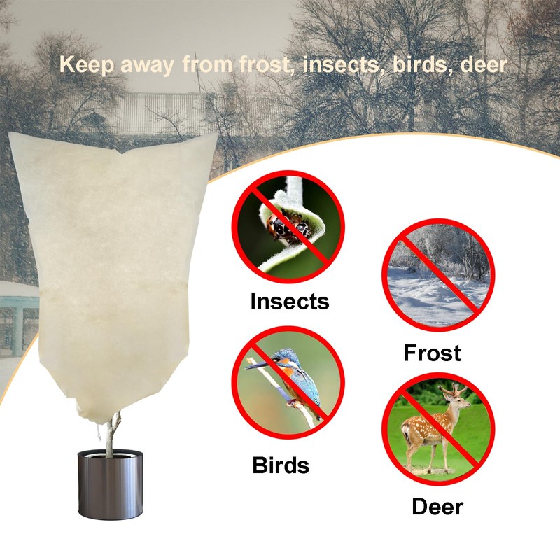 - 【Wide applications】Our plant frost protector not only can protect your plants in windy cold days or freeze winter against cold air, snow, but also keep the birds, insects, pets out. The plant frost blanket is ideal for potted plants, citrus trees, shrubs, young trees, tomatoes and other upright plants. Suitable for offices, gardens, courtyards, vegetable gardens, etc.