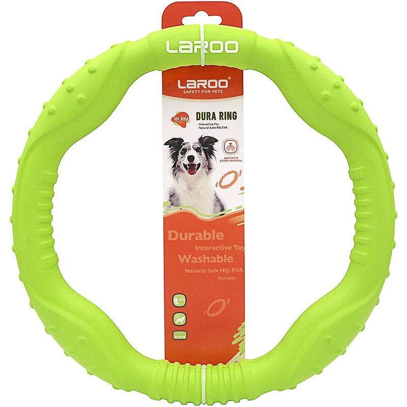 - 【INTERACTIVE DOG RING TOY FOR ALL DOGS】 LaRoo tough dog toys is suitable interactive toy for throwing, catching, retrieving games, tug of war, and chewing with dogs. Our indestructible large dog tug toy can be used as dog flying disc which allowed you and your pet to have a great fun day in your yard, pool, or park. This dog teething toys consists of aerodynamics and ring design to make it toss and be picked up easily.