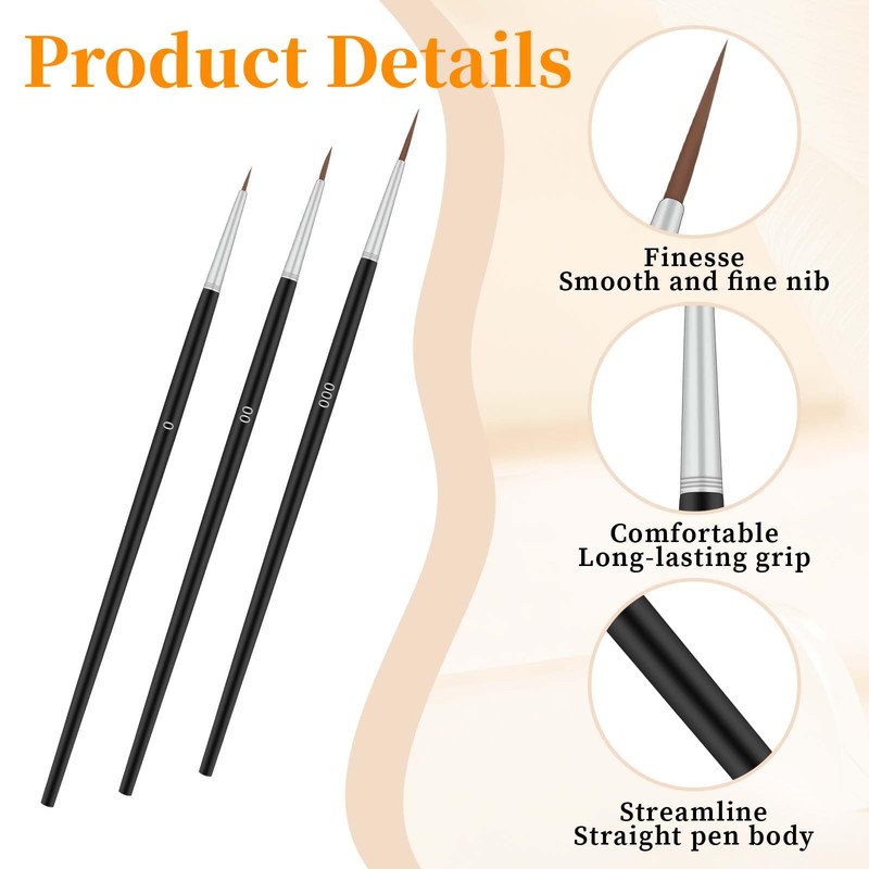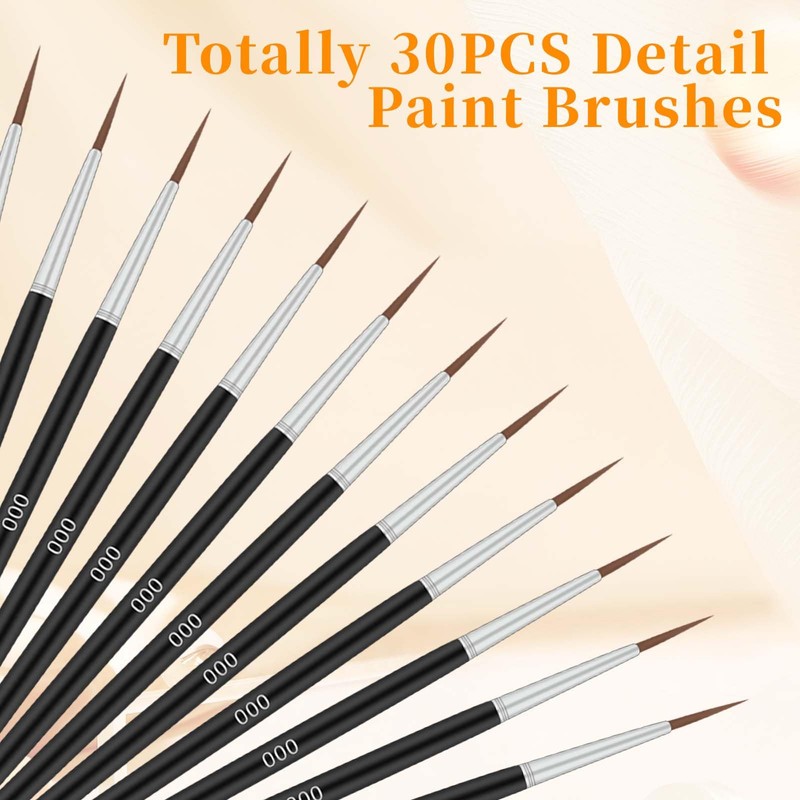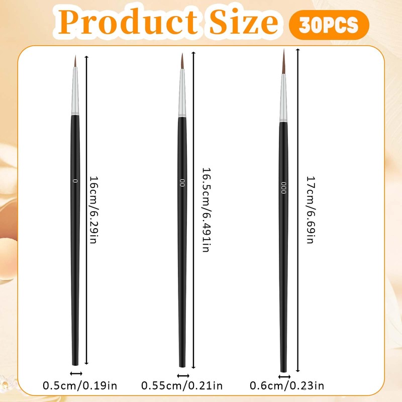 - Package contents: you will receive 30 pieces fine brush set detail brushes with three different bristle sizes #0 #00 #000, 10 pieces of each size. So you always have the right brush for perfect details, sufficient quantity for your daily use and replacement needs