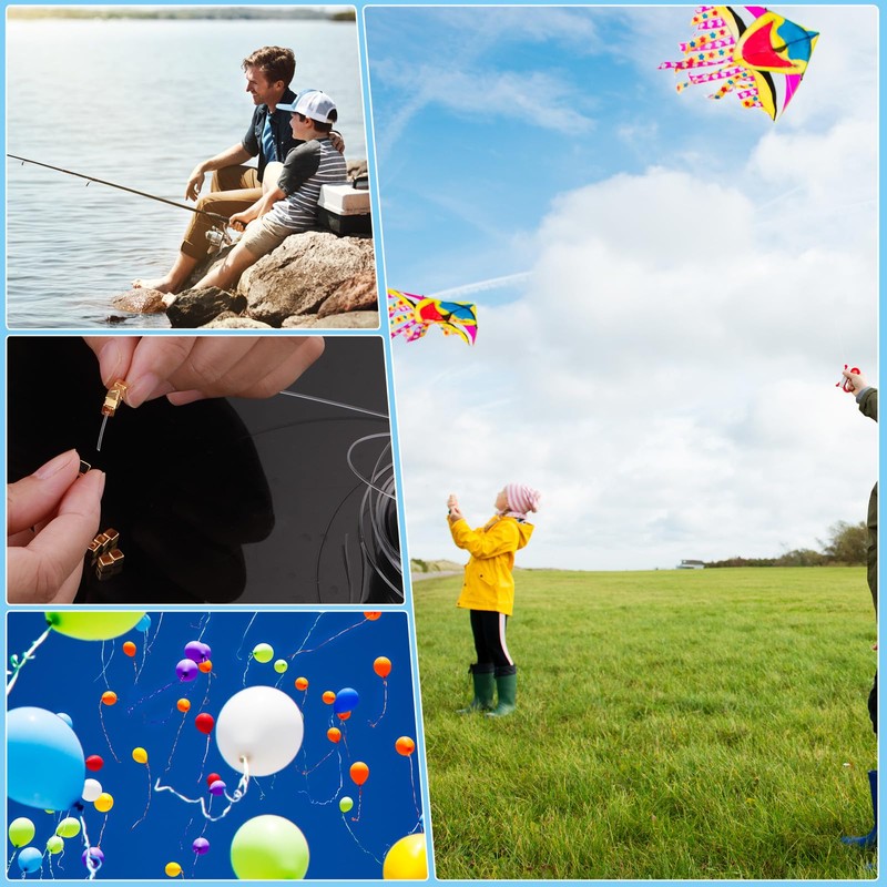 • Box contents: you will receive a roll of 0.8 mm x 200 m fishing line and 100 aluminium crimping loops. The clear string can be used for fishing and is also an accessory for hanging decorations and crafts. Sufficient for daily use