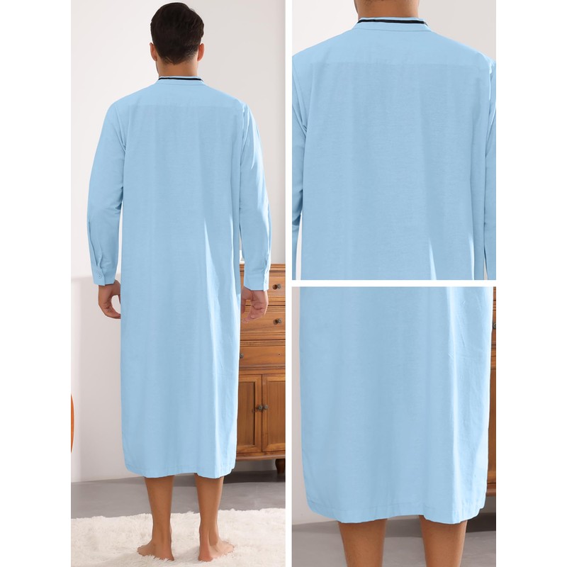 Lars Amadeus Blue Nightgown for Men's Contrast Color Stand Collar Long Sleeve...