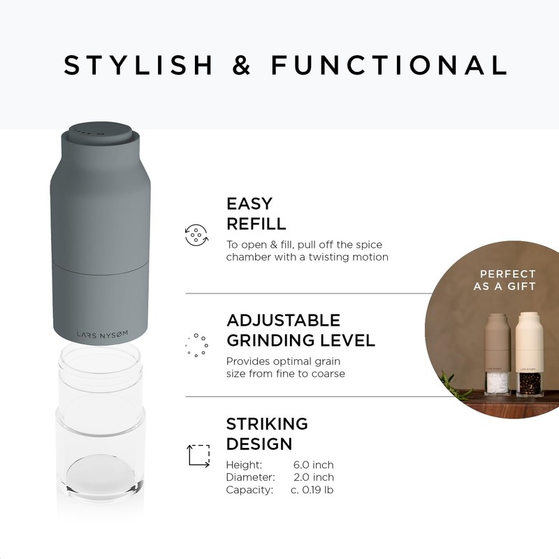 LARS NYSØM Salt and Pepper Grinder Set Stainless Steel with Adjustable Grinder I Bottle Design Spice Mills Set Manual (Ash Gray)