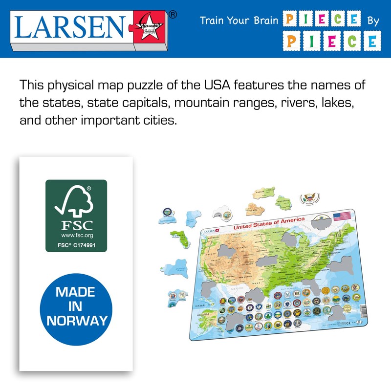Larsen K36 United States of America Physical Map, English Edition, 90 Piece Boxless Tray & Frame Jigsaw Puzzle