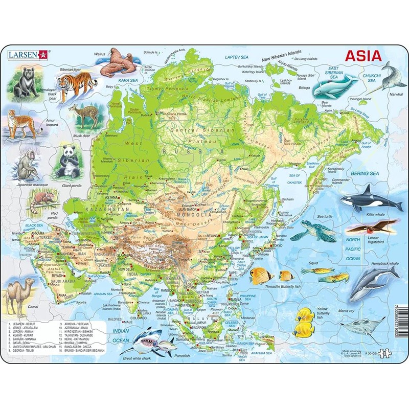 Larsen Puzzles Asia Map with Animals 63 Piece Children's Educational Jigsaw Puzzle