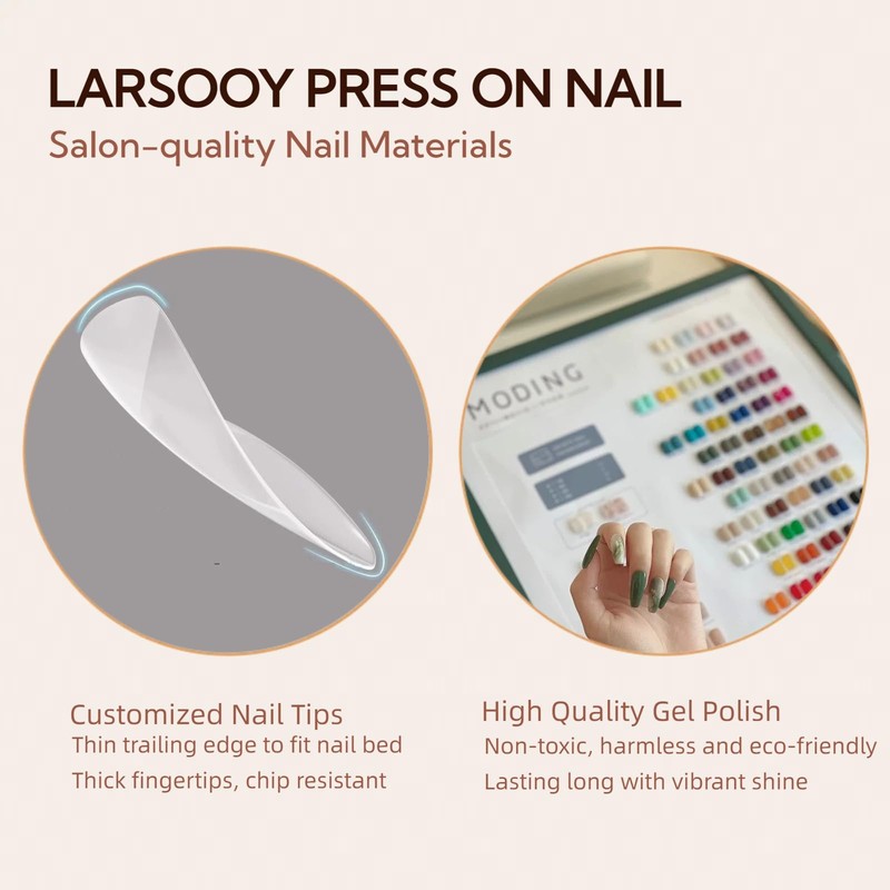 - Superior Quality: Our press-on nails are made of high quality natural materials, steering clear of harmful chemicals, which can be used for a long time and reusable. It is harmless to your body and nails, and provides you with a comfortable and wonderful experience.