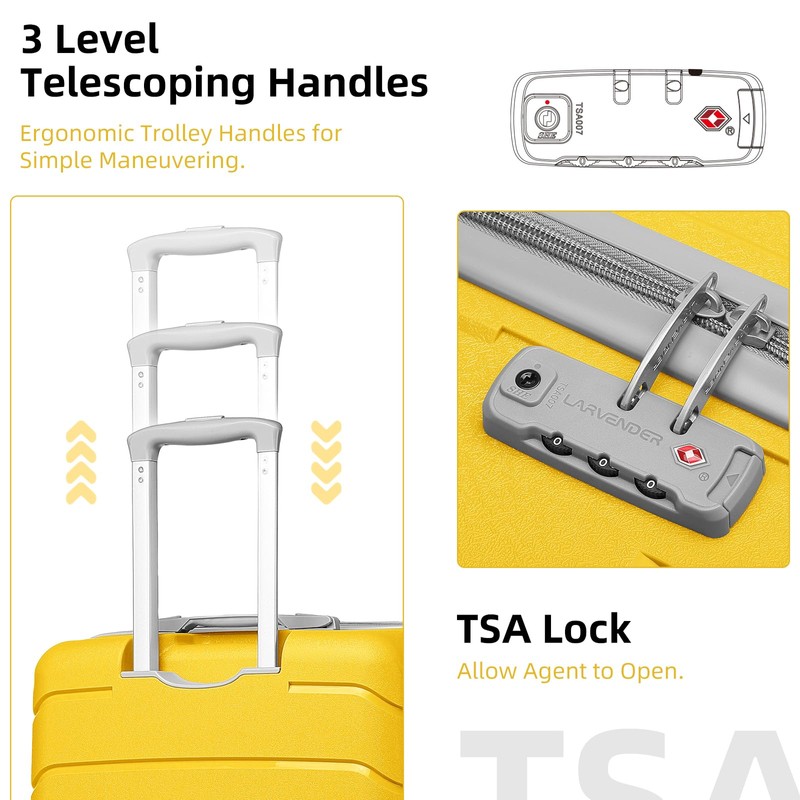 LARVENDER 3-Piece Carry On Luggage for Women,Hard Shell Suitcase 20Inch Carry On Luggage 22x14x9 Airline Approved, Spinner Wheel and TSA Lock(Yellow 20Inch/DB/TB)