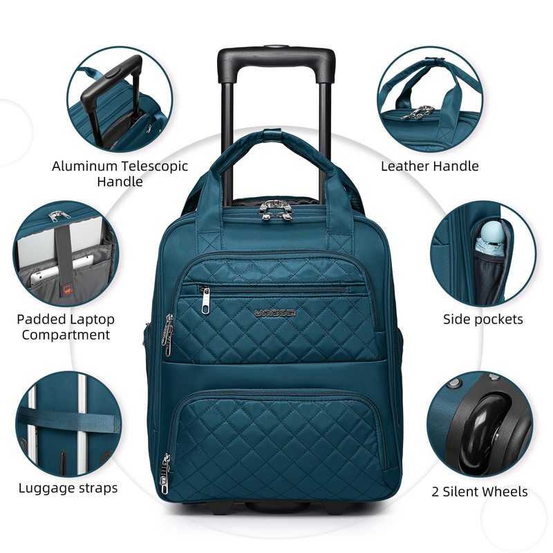 - Sturdy Yet Ergonomic: Top with a resistant iron handle, this underseat roller bag provides effortless pulling and ergonomic comfort for frequent travelers. Back with a smart sleeve to attach atop a carry-on while boarding