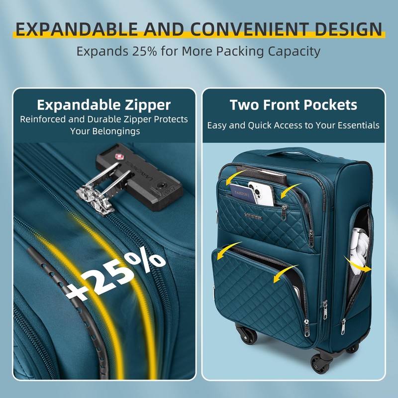 LARVENDER Softside Carry On Luggage 4 Piece, Expandable Carry On Luggage 22x14x9 Airline Approved Underseat Suitcase with Spinner Wheels TSA Lock, Blue (16/20/BP/TB)