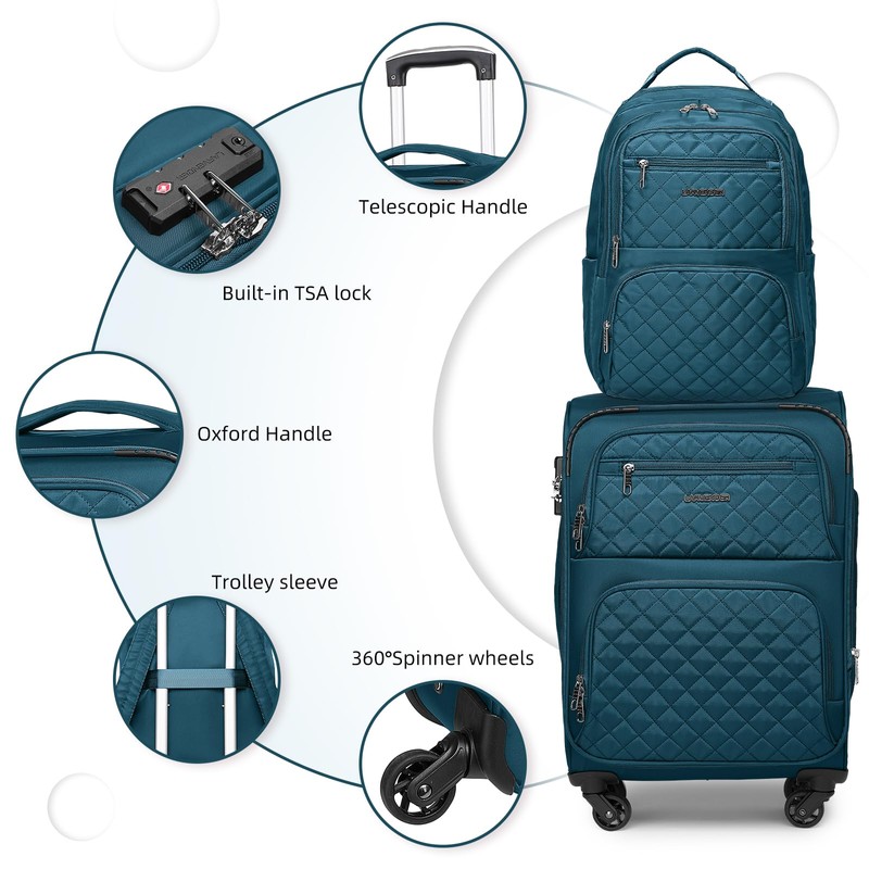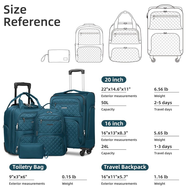 - Airline Approved: 4 piece set includes 20" expandable carry on suitcase(allows for additional 2" of width), a 16" Underseater luggage, a travel backpack and toiletry bag. The carry on luggage fits in most airline overhead compartments and under seat